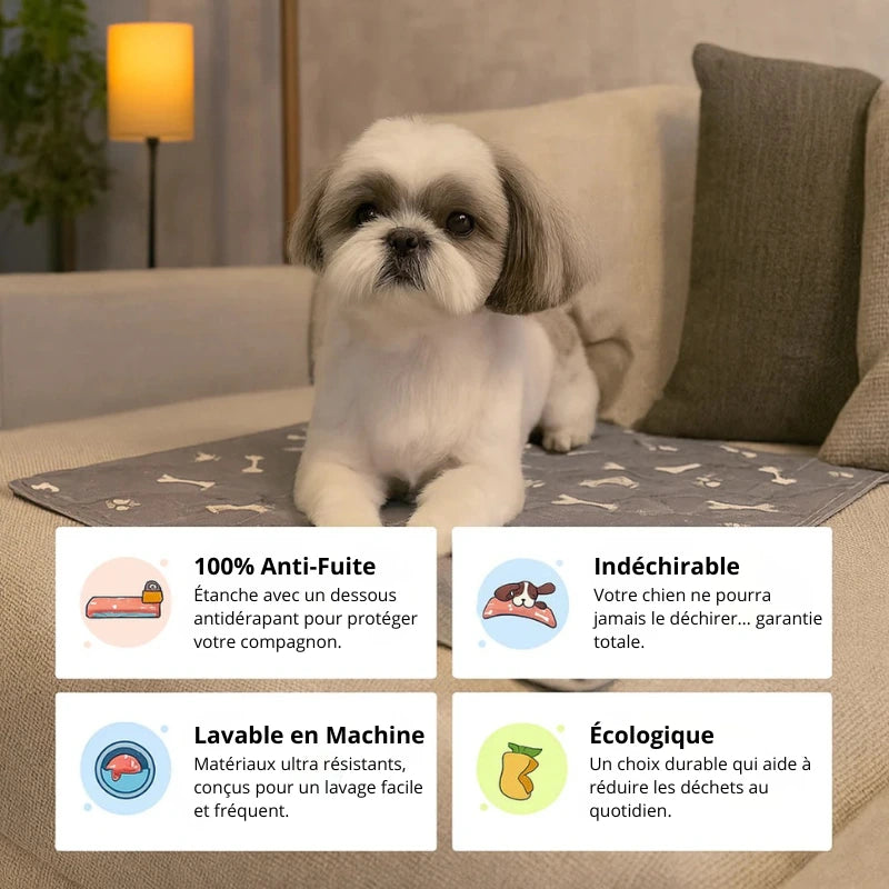 Sa surface sèche rapidement, permettant une réutilisation quasi illimitée sans odeurs ni résidus. Plus écologique, plus pratique, et surtout bien plus économique pour tous les propriétaires de chiens.